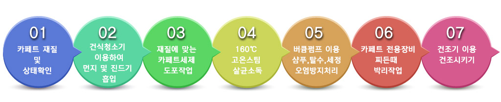 카페트는 푹신하면서 건물의 품격을 높여주고 아늑한 분위기를 연출해주는 유용한 제품이지만 일반 바닥재와는 달리 쉽게 더러워지고, 관리하기도 매우 까다로우며 직물 특성상 한번 얼룩지고 곰팡이 냄시가 배기면 오염원을 제거하기가 좀처럼 쉽지 않습니다.